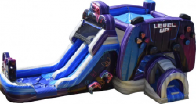 The All-New Level Up Gamer Dual Lane Combo is sure to be a hit with the kids! It has a large bounce area that leads to dual lane slides down to the Inflatable pad at the end. On the inside is a basketball hoop that the kids can play whatever game they come up with on. (Ball not included) Don't miss out as we have limited supply in stock of this unit.