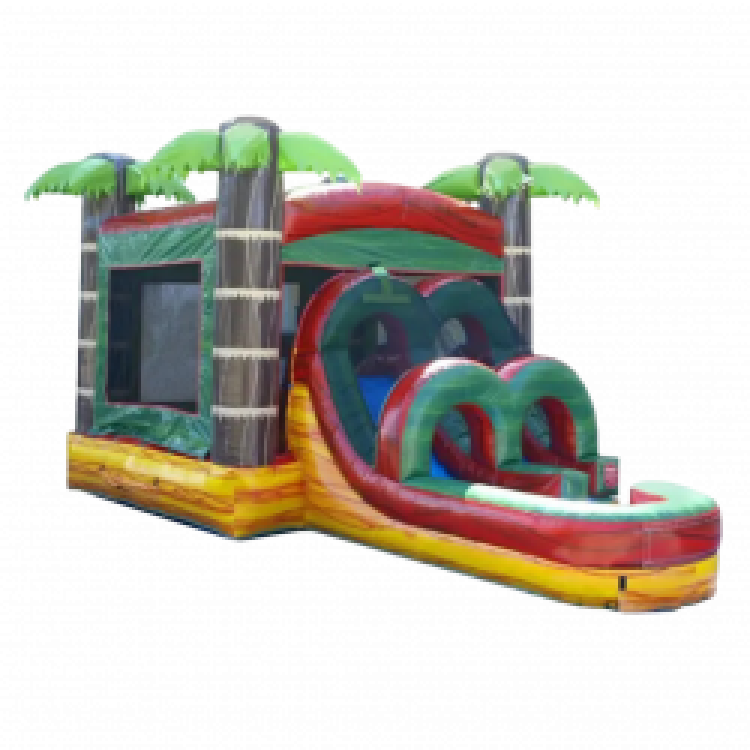 The Tropical Fire Bounce and Slide Combo is nothing shy of amazing with a full bounce house and attached wet or dry slide. Designed to transform your event into amazing tropical fun paradise!